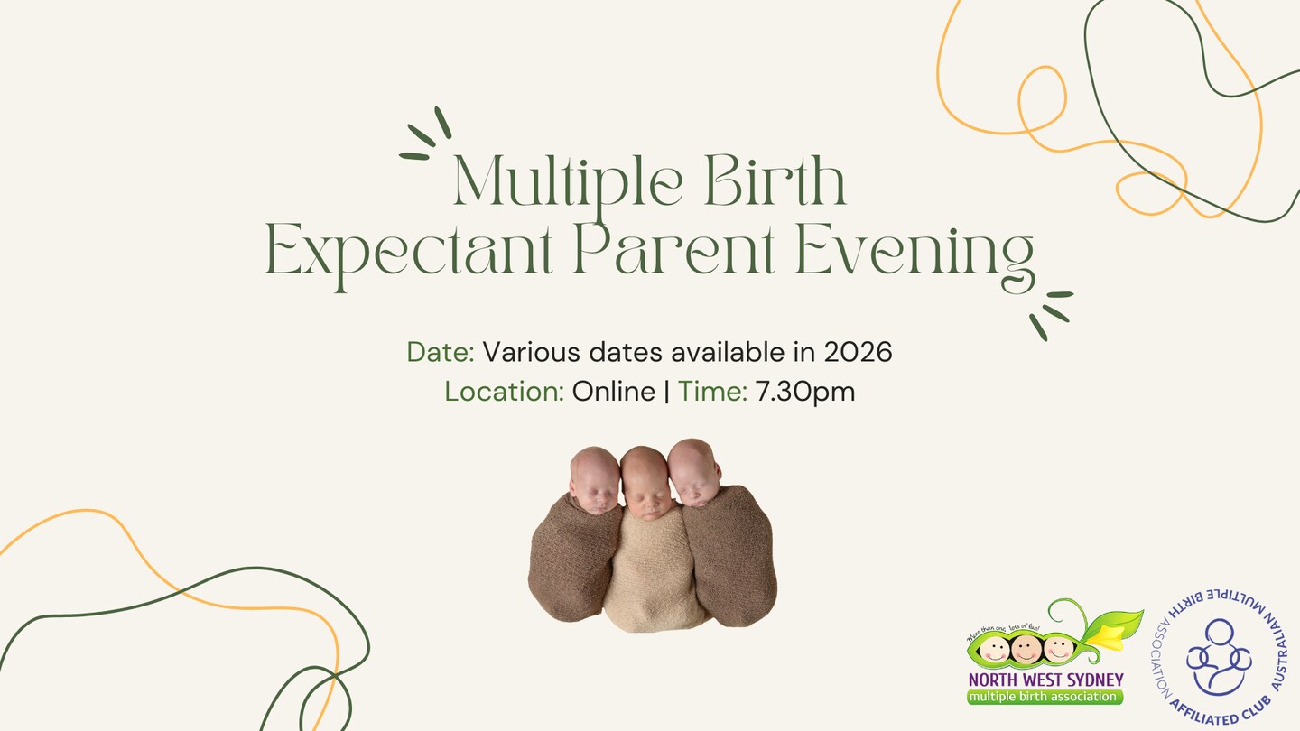 Come along to North West Sydney Multiple Birth Association's FREE information session on what to expect when you're expecting multiples. Hear from a local twin mum on valuable tips and tricks for not just surviving, but thriving with multiples. You will also meet other local multiple birth families.